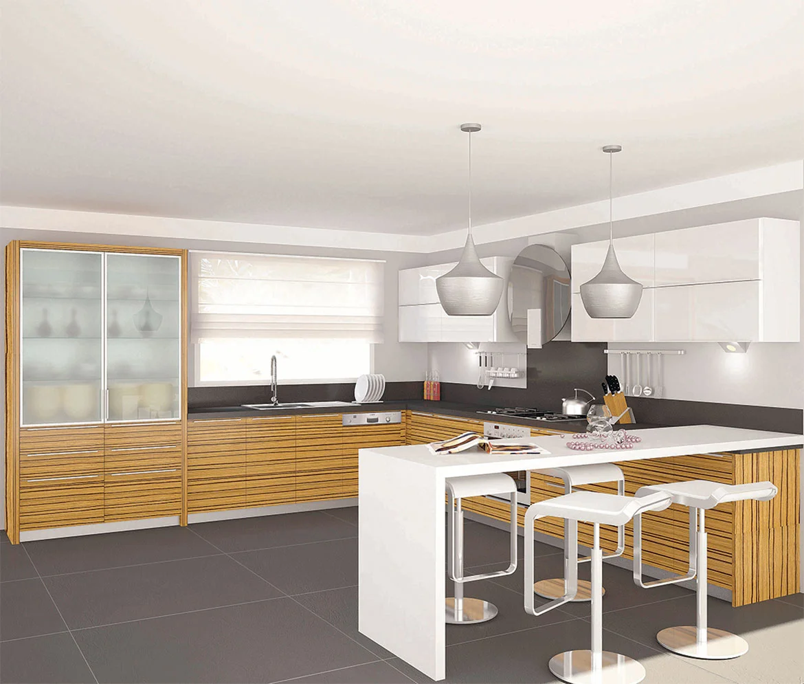 Kulpsuz dolap kapakları ile modern ve yalın hatlara sahip Bahama modeli, ada bölümüyle hem işlevsellik hem de yemek için alan yaratıyor. Onlarca renk seçenekleri ile ahşap ve lake kombinasyonları oluşturmak mümkün.